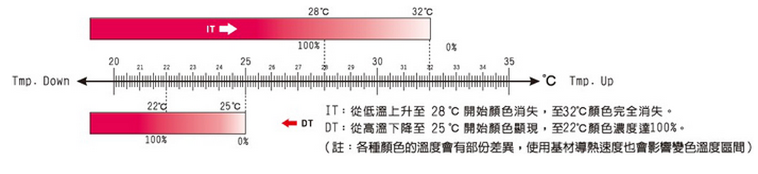 31℃红色感温微胶囊粉升温(IT) / 降温(DT)示意图